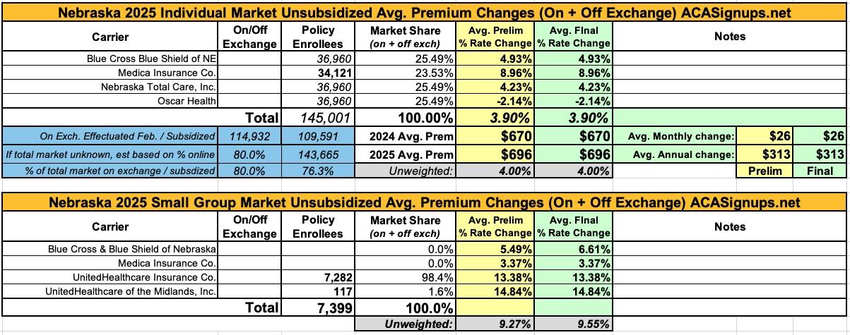 Oh yeah...here's the final 2025 rate changes for unsubsidized ACA policies for the remaining states, if anyone cares.