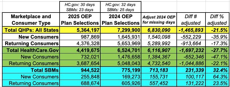 Huh? How could that be? From the initial numbers, it looks like the 2025 OEP is off to an ugly 26.5% drop in enrollments...