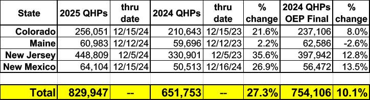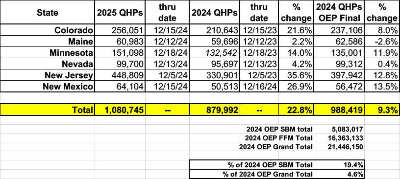 Update 12/20/24: MNsure (Minnesota's ACA exchange) just reported a 14% y/y increase through their 12/18 deadline for January 1st coverage.