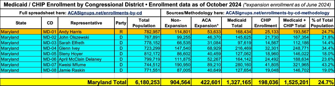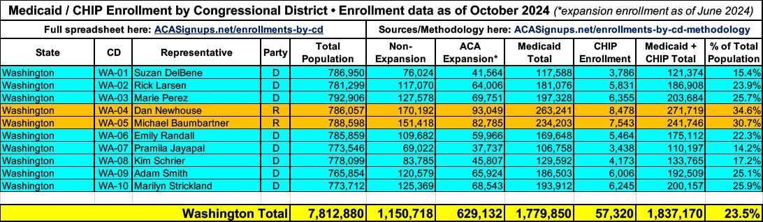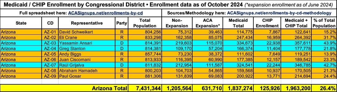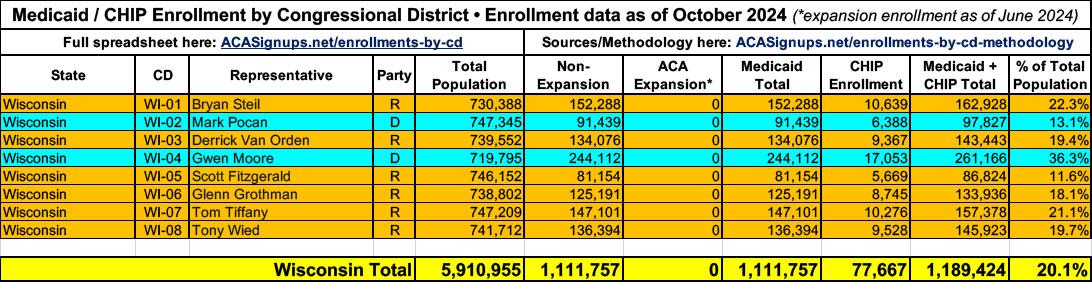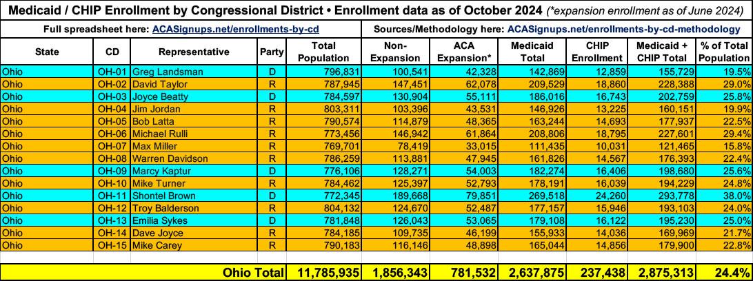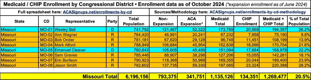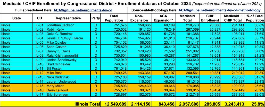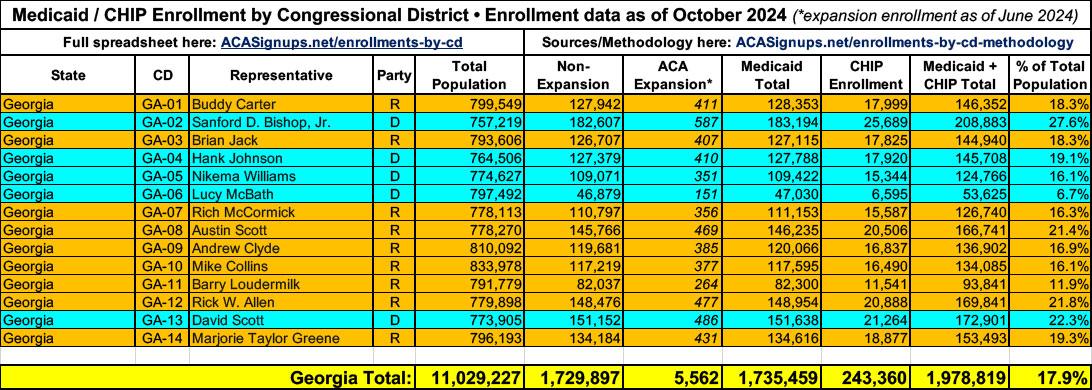 UPDATE 4/18/25: More recent Medicaid/CHIP enrollment data has become available since I first published the spreadsheet, as well as more recent total population estimates. I'm in the process of updating each but the existing spreadsheet data should still be pretty accurate. I'll post again once the spreadsheet itself has been updated.