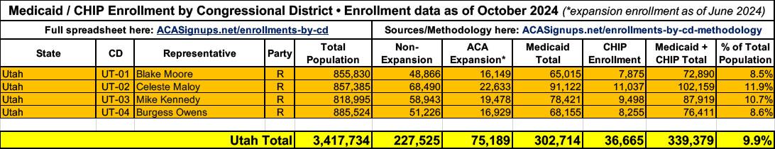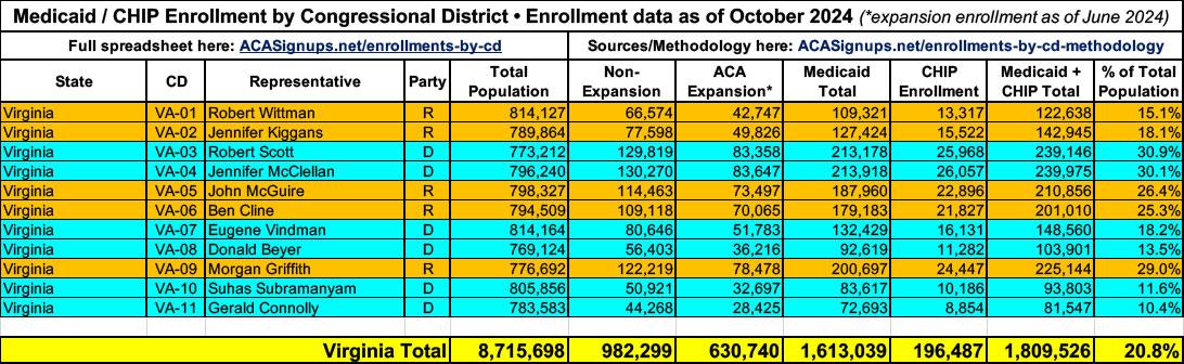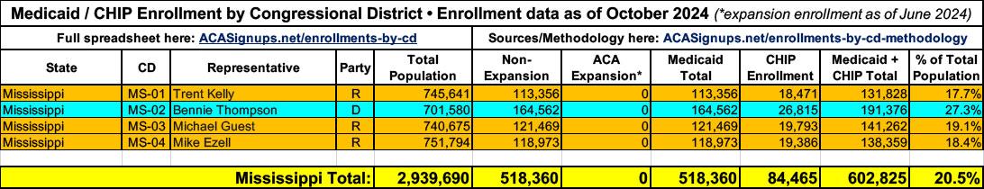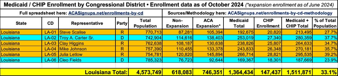In all cases, the total Medicaid & CHIP enrollment data is as of October 2024 via the Centers for Medicare & Medicaid Services (CMS) prior to the Trump Admin taking it over.