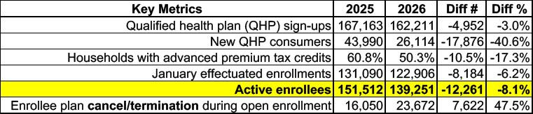 Minnesota: MNsure wraps up 2026 Open Enrollment w/139K QHPs, down 8.1% y/y; 50% increase in cancellations, 112% increase in "buying down"