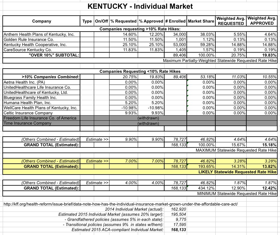 IMPORTANT:See this detailed explanation of how I've come up with the following estimated maximum approved weighted average rate increases for Kentucky.