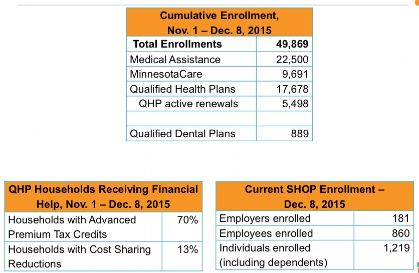 Thanks to Louise Norris for the heads up! MNsure held their monthly board meeting today as well, bringing their data right up to date through yesterday: