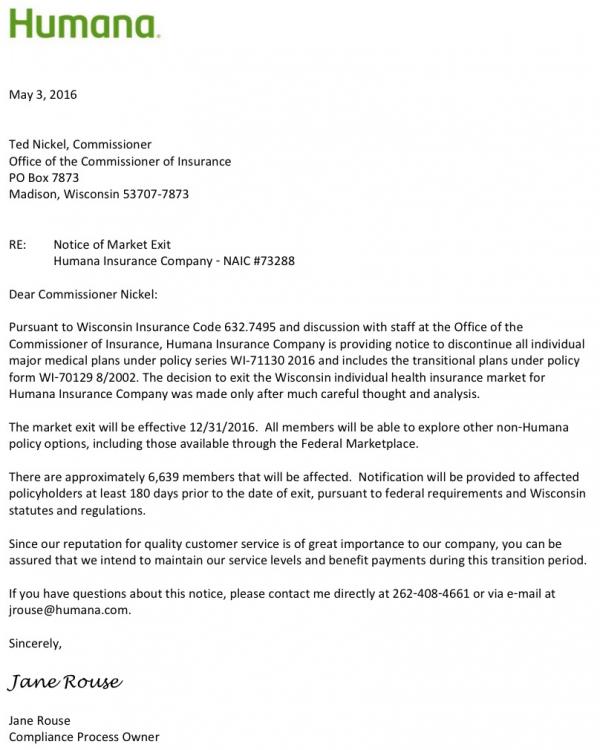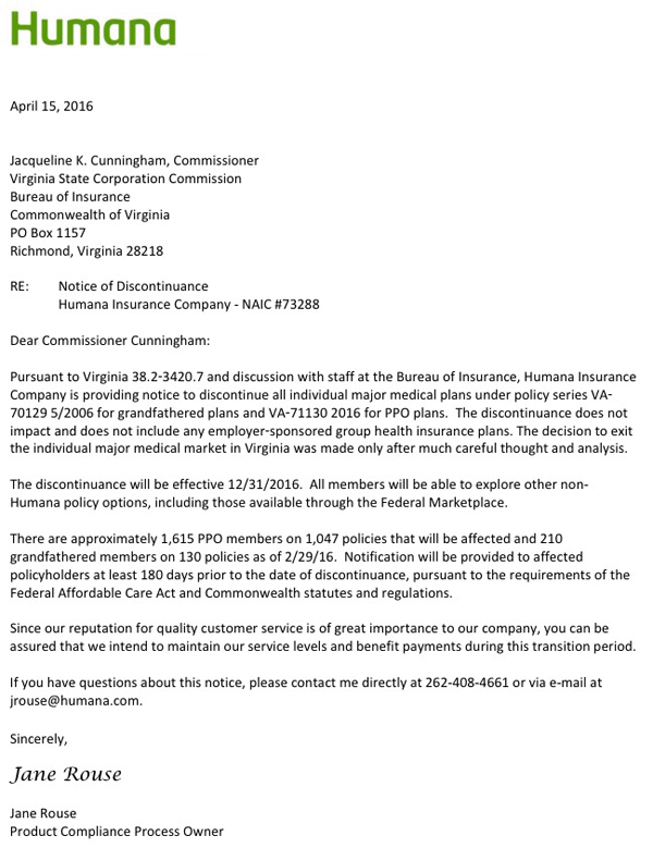 This is really just a summary of my last 4 posts. I've combed through the SERFF databases for every state which uses the system for rate filings, and while very few have the actual 2017 rate filing requests listed yet, at least 4 of them have official individual market exit letters submitted for 2017 from Jane Rouse, the Product Compliance Process Owner for Humana Insurance Co: