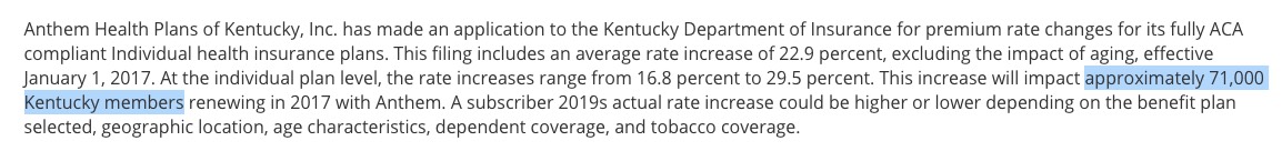However, there were two important caveats to that: First, Wellmark isn't currently participating on the ACA exchange; all of those enrollees were off-exchange only. Secondly, at the time I had no idea how many of them were ACA-compliant and how many were "grandfathered" or "transitional" policies, which aren't ACA compliant and which, more significantly, aren't part of the same risk pool.