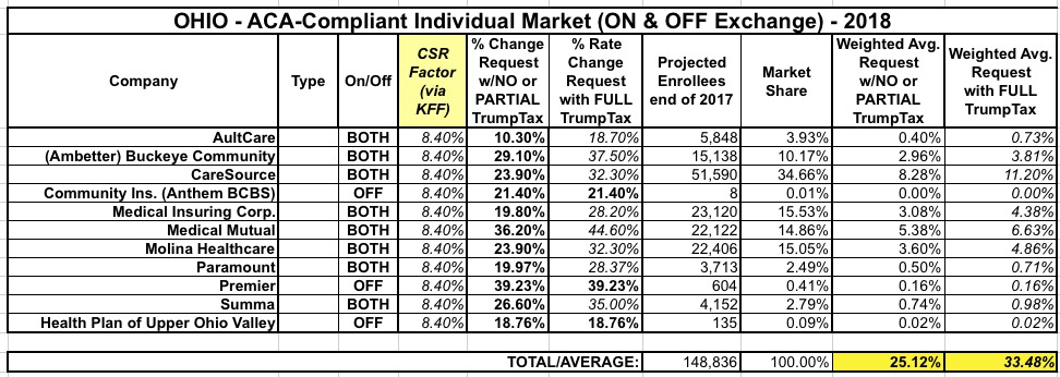 Like Wisconsin and Michigan, Ohio has a high number of carriers statewide...although the per-county competition is still lacking in some areas. Even so, their rate hike requests are still pretty high even with CSR payments being made...and dramatically higher if they aren't.
