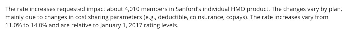 Interestingly, while Medica's rate filing letter clearly states that the 16.9% request assumes CSR payments will be made and the mandate will be enforced, they also list "unprecedented uncertainty/risk inherent in the marketplace" as one of the key drivers of the increase.