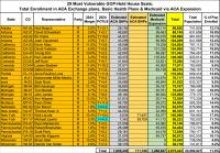 Below I've posted district-wide enrollment in ACA exchange-based Qualified Health Plans (QHPs), ACA Basic Health Plans (BHPs) and Medicaid via ACA expansion.