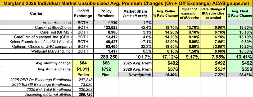 In Maryland specifically, all of this will result in average gross premiums hikes of 13.4%.