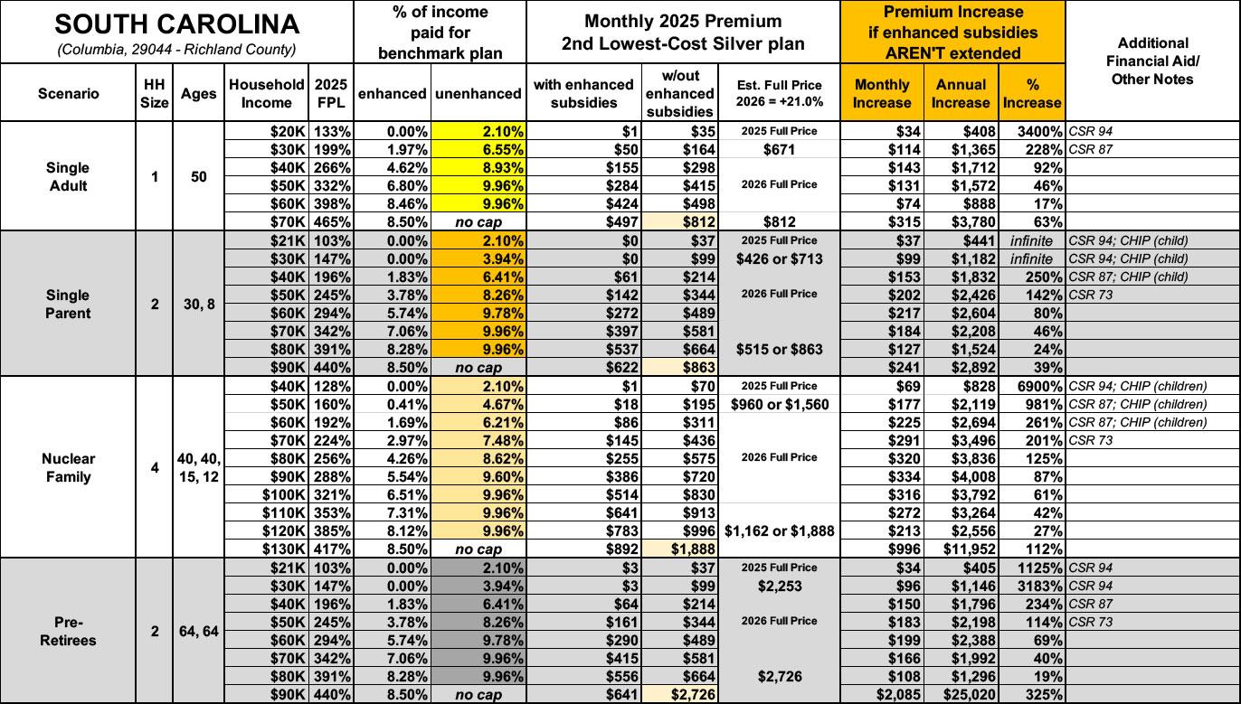 I decided to run the numbers myself to get an idea of just how much the combination of expiring IRA subsidies and the CMS "Affordability/Integrity Rule" will cause net premiums to increase starting in January 2026.