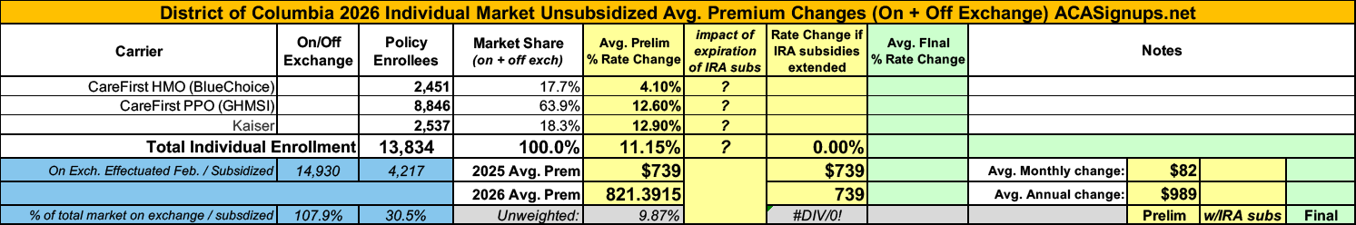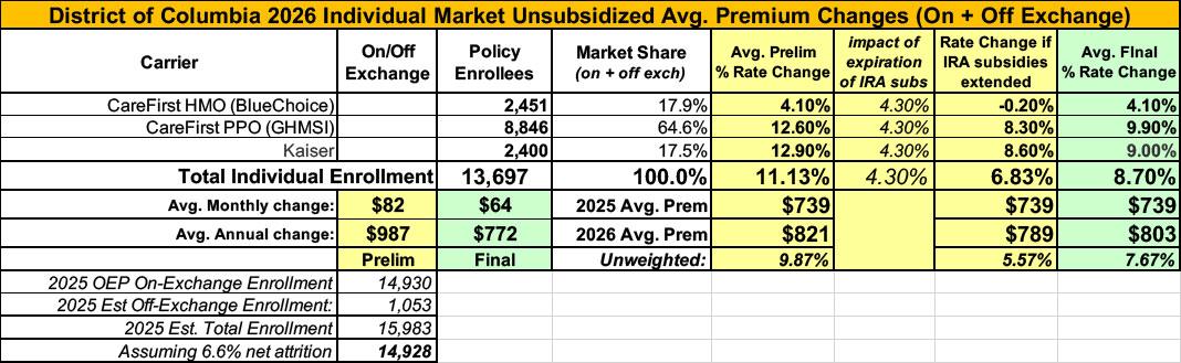 UPDATE 9/27/25: The DC Dept. of Insurance, Securities & Banking has published the final/approved 2026 individual market rate filings, and the weighted average has dropped by several points to 8.7%.