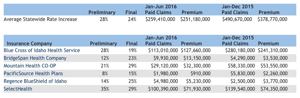 The final rate approvals for the Idaho indy market are either positive or negative, depending on your POV. On the one hand, the statewide weighted average is roughly 24%. On the other hand, this is 4 points lower than the 28% requested average from the carriers. As I noted in June, Idaho is among the only states which also posts exactly how much each carrier earned in premiums and paid out in claims for both last year and this year to date, giving some insight into which carriers are making a profit or taking a loss on the indy market:
