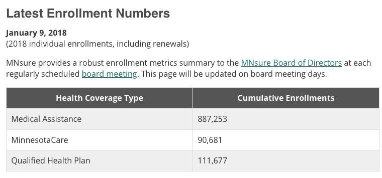 111,667 QHP selections bumps them up another 1,667, with 5 days left to go for Minnesota residents to #GetCovered for 2018. It's worth noting that enrollment in MinnesotaCare, MN's name for the ACA's Basic Health Program, has actually dropped slightly since the last hard number update I confirmed back in mid-November (93,049).