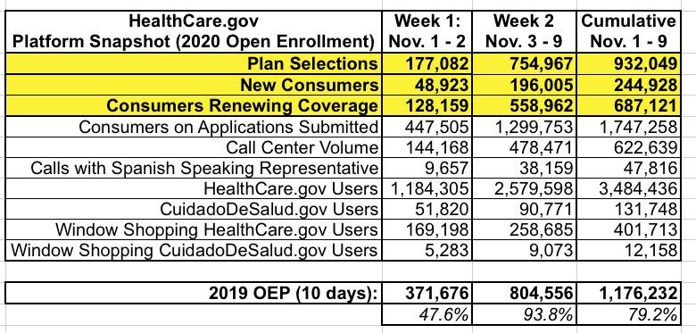 If you assume around 130,000 of the difference is due to the missing day, that still leaves 2020 Open Enrollment around 100,000 short of the same time period last year on HealthCare.Gov.